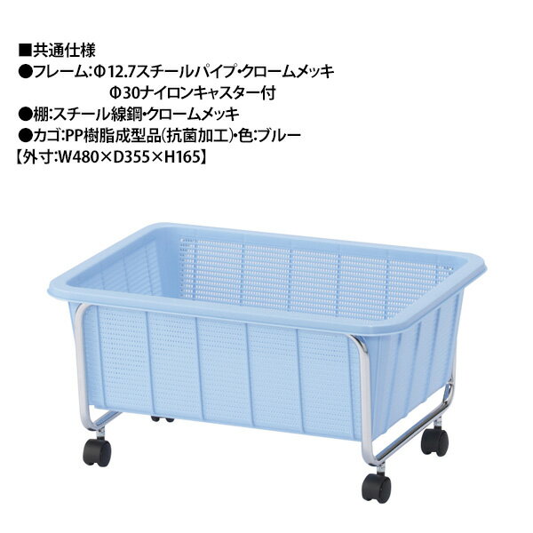 ■サイズ横幅(W)x奥行(D)X高さ(H) mm 480x360x240 ■共通仕様 ●フレーム:φ12.7スチールパイプ・クロームメッキ・φ30ナイロンキャスター付 ●棚:スチール線鋼・クロームメッキ ●カゴ:PP樹脂成型品(抗菌加工)・色:アイボリー 【外寸:W480×D355×H165】 ●重量:1.4kg ●梱包:1脚入 ■カラー アイボリー ■組立について 宅配便での発送 ■納期について おおよその納期は、約5〜7日後の発送予定となります。